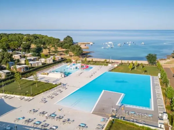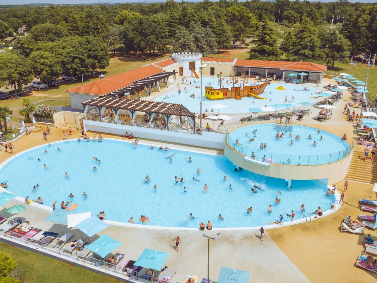 Camping Park Umag dispone di un enorme complesso di piscine, con una piscina per bambini ed una jacuzzi per rilassarsi. Quindi c'è stato pensato sia ai bambini che agli adulti. In 2020, c'è stato aggiunto persino un nuovo complesso di piscine con piscina grande, una piscina per bambini di 508 m2 con giochi d'acqua e scivoli, ed un'altra piscina per i più piccini con giochi acquatici. Intorno a questo nuovo complesso troverete un grande solarium. Il secondo complesso di piscine del campeggio Park Umag si trova vicino alla baia di Canova e offre oltre 1.700 m² di divertimento acquatico! Quando vi è venuto sete o fame potete fare un salto nel ristorante adiacente per uno spuntino o un drink.