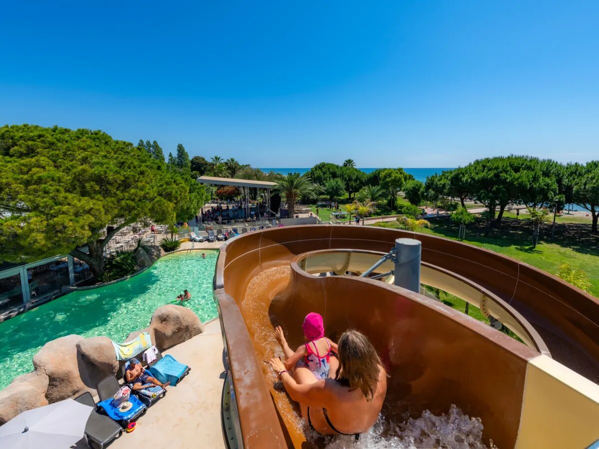 Uno dei maggiori vantaggi di Arinella Bianca è la sua fantastica posizione: dal vostro alloggio potrete scendere direttamente sulla morbida sabbia. Qui potrete rilassarvi al sole della Corsica, fare un tuffo rinfrescante in mare o optare per l'azione con vari sport acquatici. Ma un divertente parco acquatico vi aspetta anche nel campeggio stesso! In Corsica troverete due divertenti piscine, entrambe riscaldate. C'è un'area con scivoli e un parco giochi acquatico dove i più piccoli potranno sguazzare in tutta sicurezza e per ore. Cercate il massimo del relax? Allora c'è la piscina Balneo nell'area benessere. Qui si trova un'oasi di tranquillità dove gli adulti (18+) possono fare il pieno di energia nell'hammam, nella jacuzzi o con un meraviglioso massaggio.
