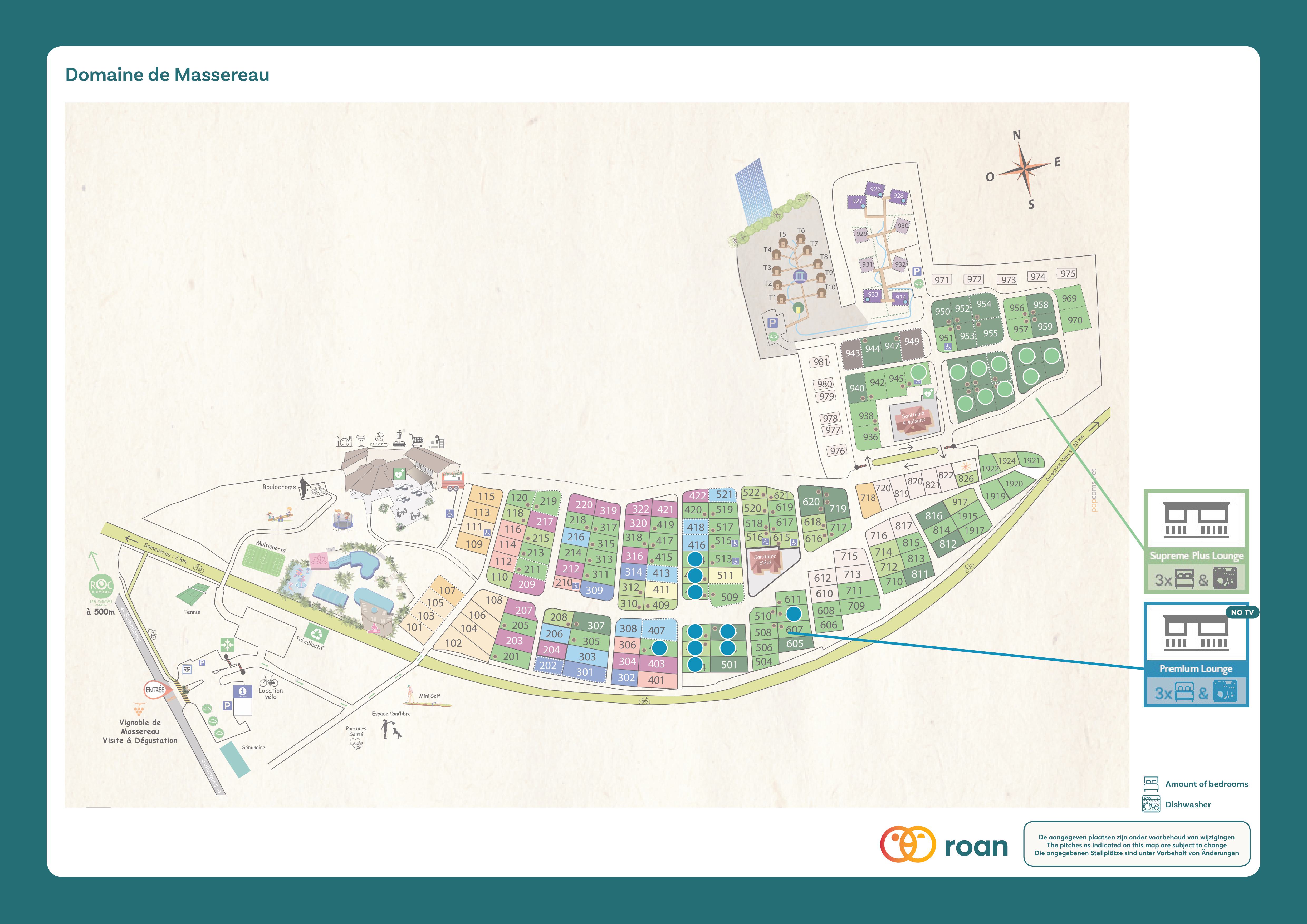 Votato come il campeggio più attento all'ambiente in Europa, il Camping Le Domaine de Massereau vanta anche diversi premi ADAC. La tenuta di 13 ettari è completamente autosufficiente dal punto di vista elettrico, grazie a un imponente parco fotovoltaico con 1.200 m² di pannelli solari. Il campeggio ha anche investito in un serbatoio per la raccolta dell'acqua piovana, dotato di un sistema di irrigazione selettiva a goccia, per sfruttare al meglio le risorse idriche. Inoltre, il campeggio dispone anche di punti di ricarica per veicoli elettrici, incoraggiando la mobilità sostenibile.