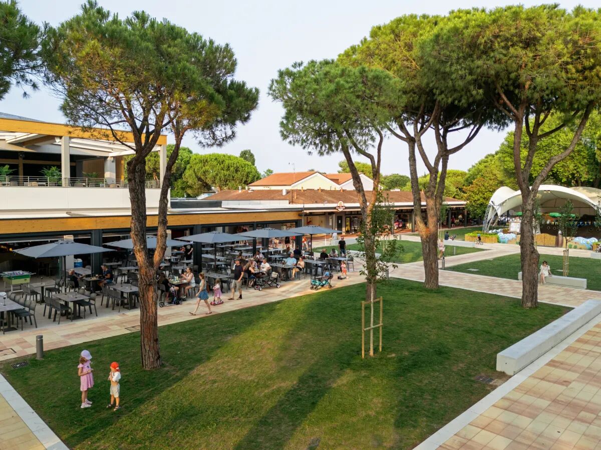 Il Camping Pra' delle Torri ha una propria via commerciale con un supermercato, negozi di souvenir, gelateria, bar/snack bar e sei ristoranti. La maggior parte delle strutture può essere utilizzata non solo in alta stagione, ma anche in bassa stagione. Inoltre, nel 2025 potrete godere di un nuovo ristorante-pizzeria, di uno snack bar e di un accogliente giardino. Nella nuova rosticceria del campeggio potrete anche portare via pasti pronti senza lasciare il campeggio. Che comodità!
