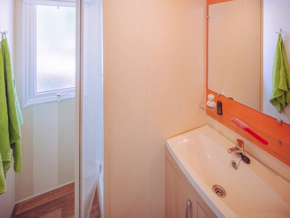 Questa lussuosa casa mobile dispone di tre camere da letto per un ottimo comfort! La camera da letto principale ha un grande letto matrimoniale di 2,00 x 1,60 m, la seconda camera ha 2 letti singoli. Uno dei letti può essere chiuso e spinto sotto l'altro, in modo di creare extra spazio per bagagli o per posizionare una culla. Nella terza camera troverete 2 letti singoli o un letto a castello (max. 70 kg). Nel soggiorno troverete lo spazio per un altro posto letto. Tutti i letti sono corredati di cuscino e coperte singole. Tutte le finestre della camera da letto hanno zanzariere ed ombreggiante. Una sponda letto per bambini è standard in questa casa mobile.
