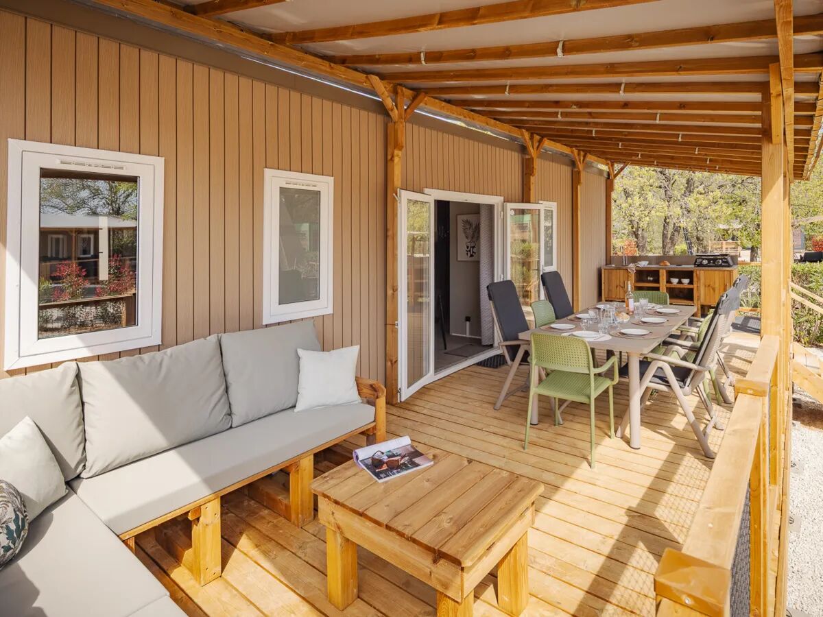 Airco SAT-TV Veranda Recinzione della veranda Divano lounge Lavastoviglie Pulizia finale Letti fatti Cucina esterna 2 bagni Premium Zone Nuova Wi-FiLa casa mobile più nuova, più grande e più lussuosa della nostra gamma! Darà alla vostra vacanza in campeggio una dimensione completamente nuova. Non troverete una casa mobile più lussuosa sul mercato attuale! La Supreme Deluxe Lounge può ospitare fino a 8 persone e dispone di 4 camere da letto. Nella spaziosa veranda potrete rilassarvi sul grande divano lounge o su uno dei 2 lussuosi lettini. Sapevate che questa sistemazione dispone anche di una cucina all'aperto e include Wi-Fi, la biancheria da letto, gli asciugamani per la doccia e la pulizia finale?
