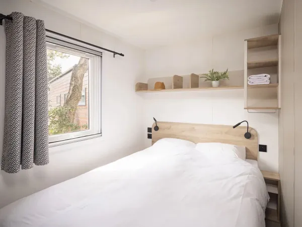 La casa mobile Supreme Deluxe Lounge è dotata di quattro spaziose camere da letto. Entrambe le camere matrimoniali hanno un letto matrimoniale extra-large lungo 2,00 e largo 1,60 con materasso Auping. La terza camera da letto è dotata di due letti singoli (1x letto 2,00 x 0,70 e 1 letto 1,90 x 0,70), uno dei quali può essere fatto scorrere sotto l'altro, in modo da avere spazio sufficiente in questa stanza per collocare, ad esempio, una culla. Nella quarta camera da letto si trova un letto a castello (1,90 x 0,70, max 70 kg). Anche la struttura del letto a ribalta è di serie. Le finestre delle camere da letto sono dotate di zanzariere e tende oscuranti e al vostro arrivo avremo già preparato tutti i letti per voi!